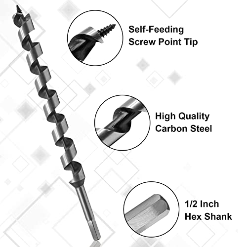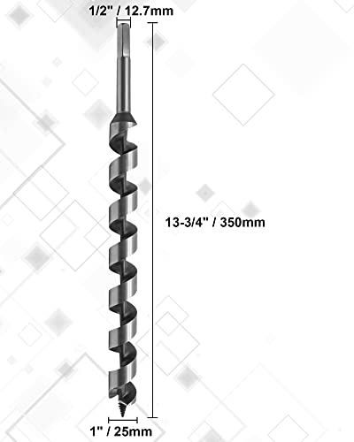 - *Package Content: 1 x 14-Inch Auger Drill Bit. 1/2-Inch Hex shank base well fits into majority pistol drill and drill press, more easily and securely installation without slippage and shedding.