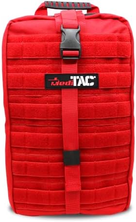 MediTac Large Hawk Type Tactical Trauma Bag - Hook and Loop Fastener Backpack, MOLLE Rucksack Pack - Red