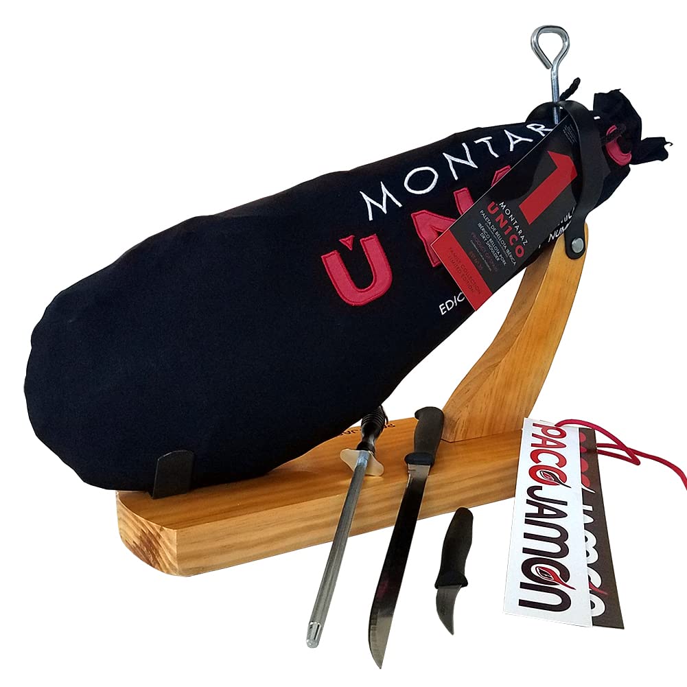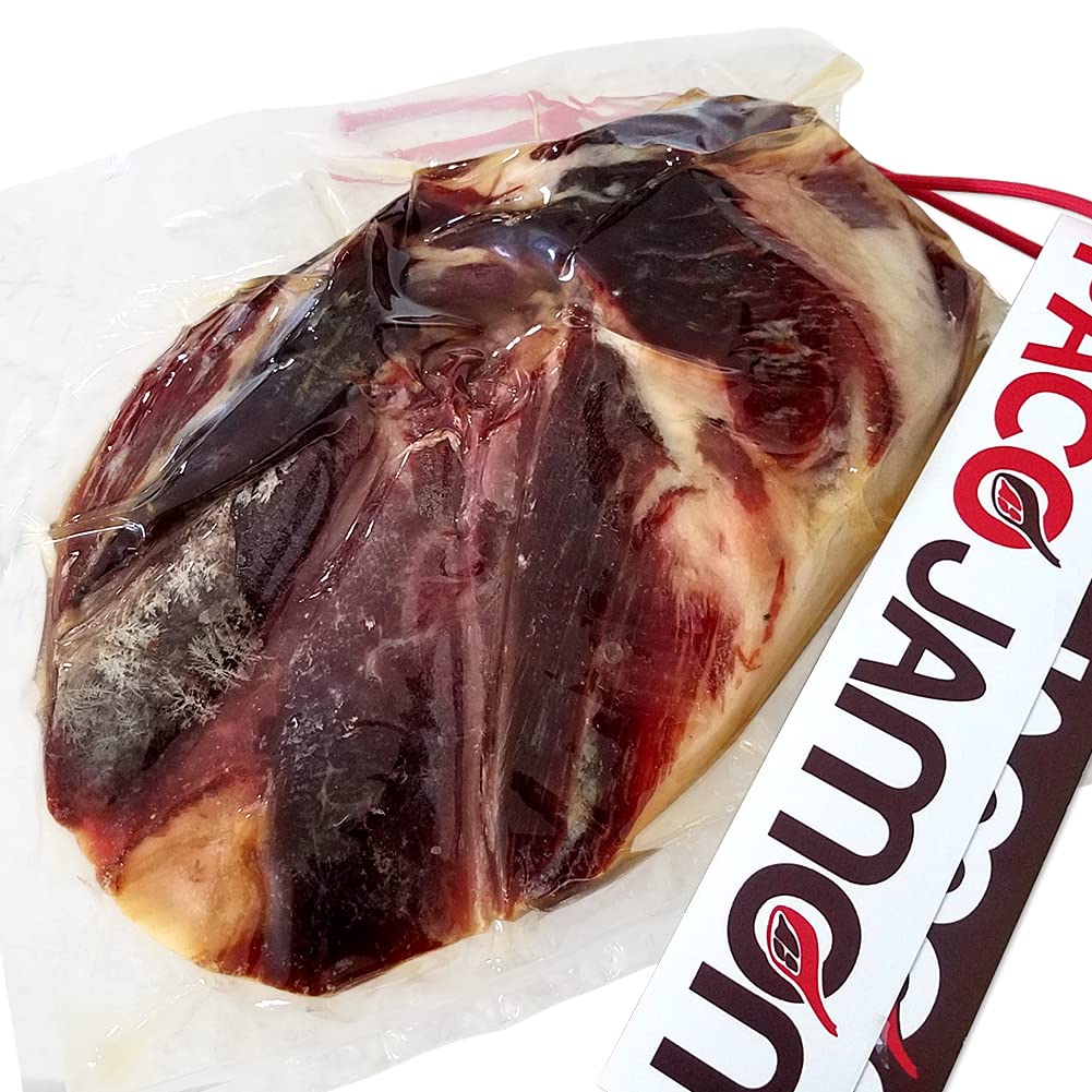 Jamón Ibérico de Cebo COVAP Alta Expresión, 100% Raza Ibérica, Importado de España. Producido por la Cooperativa del Valle de los Pedroches, Córdoba, España. 24 meses de Curación. ¡El peso medio del jamón es de 15-16 libras! Entre 40 y 50 porciones. Producto inspeccionado y seleccionado por maestro cortador Paco Jamón. Productos de cerdos ibéricos negros 100% de pura raza. El rendimiento del jamón ibérico de Cebo: el rendimiento de un jamón ibérico de Cebo referido al porcentaje de jamón limpio que vamos a consumir, libre de piel, grasa externa y huesos una vez cortada la pieza varía según la raza del animal, la alimentación del cerdo y la propia pieza ya que se trata de un producto manufacturado y no hay dos jamones iguales ni siquiera entre jamones de la misma calidad. En el caso particular de este jamón ibérico de Cebo las estimaciones de rendimiento van del 45% al 38%. Otras características del cerdo ibérico es que cuanto más pura es la raza ibérica menor rendimiento de la pieza tras el corte por lo que esta raza 50% presenta un rendimiento ligeramente superior a la raza 100% del mismo fabricante ya que tiende a tener menos grasa externa y en consecuencia menos desperdicio