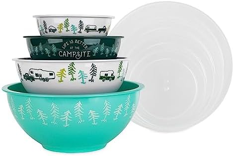 - 8-Piece Nesting Bowl Set: Ideal for camper storage, this eight-piece set includes (4) durable melamine nesting mixing bowls with (4) secure-fitting plastic lids.