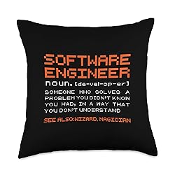 100% Polyester Software-Engineer Developer Definition Programming. You are a Software-Engineer or Programmer and Coder, this funny Design is for computer programming and developer who geek about Syntax, Coding and source-code. Programmer Software-Engineer and Coder. This funny coder programmer definition is designed for testing, debugging, fixing errors and bugs, a nerd about programming languages or applications, and the right code execution of programming. 100% spun-polyester fabric Double-sided print Filled with 100% polyester and sewn closed Individually cut and sewn by hand Spot clean/dry clean only