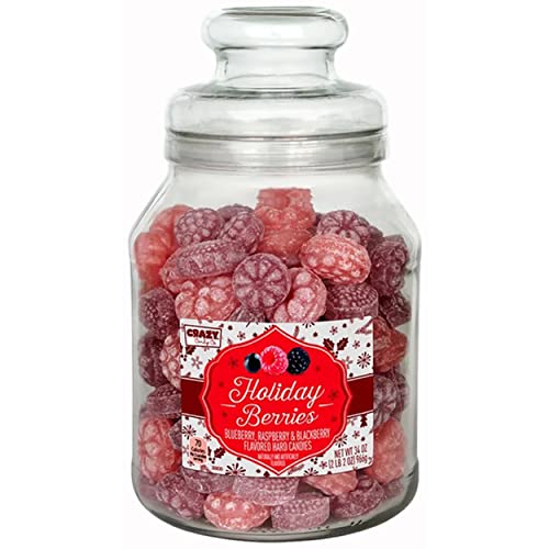 Crazy Candy Co | Fruit flavored Jumbo Size Hard Candy | Assorted Natural Flavors | Old Fashioned Heavy Glass Container | Imported from Germany | 34 oz (966 g) (Berry Mix)