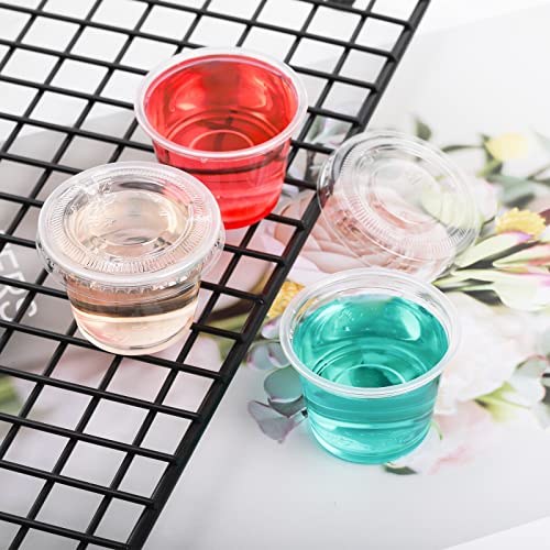 Hedume 600 Sets 1 Oz Disposable Portion Cups with Lids, Clear Jello Shot Cups, Plastic Souffle Portion Cups, Sampling Cups with Lids, Sauce Cups