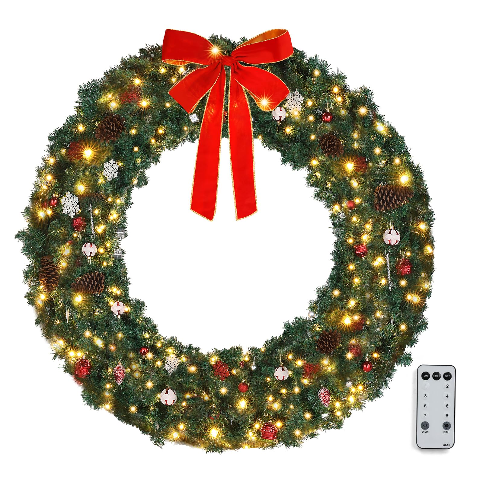 - PROPER SIZE: 13.7inch when you received is folding state but you will get a 20 inch wreath after fluffing. Since the wreath is packed in a relatively small box to satisfy transportation, you need to expand the branches and adjust leaves into best shape and you'll get a 20 inch full wreath of enough size.
