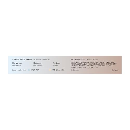 - Clean Perfume: hipoalergénico, vegano, libre de crueldad animal y seguro para pieles sensibles. El perfume fresco para hombre y mujer de Skylar no contiene parabenos, ftalatos, sulfatos, colorantes sintéticos ni miles de sustancias químicas nocivas.