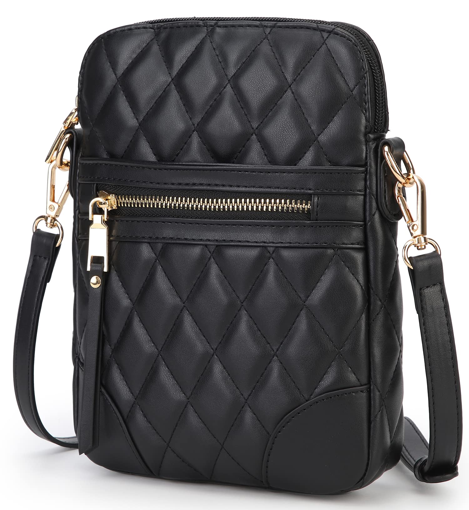 lola mae Small Quilted Crossbody Bag for Women Phone Pocket Shoulder Handbag Zipper Closure