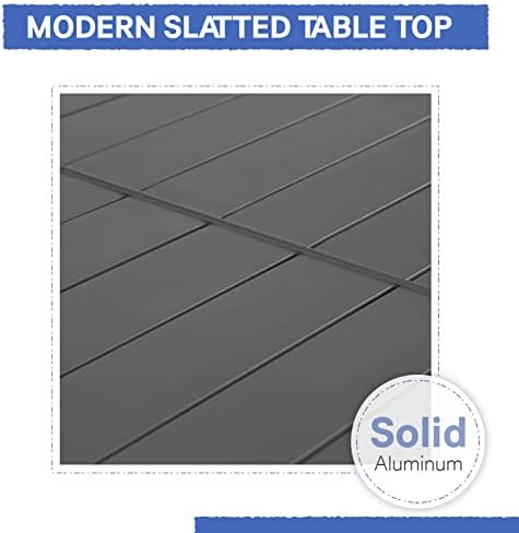 • 【DURABLE FRAME & FUNCTIONAL DETAIL】: Durably made of solid aluminum with a rust- and weather-resistant finish, helping ensure a sturdy dining table set that lasts for years to come. Also, there are adjustable leveling feet to stay balanced and protect the rectangular table during movement.