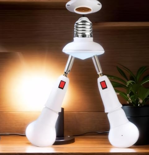 - 【Adjustable Socket】 Each socket has 360 rotating degrees and 180 degree bending, convenient for you to adjust the lighting angle according to you needs. 2-in-1 E26/E27 light bulbs socket adapter allows 2 bulbs installed to one socket.