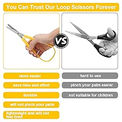 [ Package Include ]The loop scissors include 3 ring scissors, which are red, blue, and yellow for you to use, and each scissor is 8 inches long, which is suitable for most people. [ Unique Design ]: The loop scissors adopt a self-opening design. Compared with ordinary scissors, our scissors are easier to use, effortless, and easier to control. It is a good tool for paper cutting. [ Good for Kids ]: The self-opening design can well exercise the holding power of children's palms, and allow children to give free play to the imagination and creativity of paper cutting. [ Save Material ]: The loop handle scissors are made of stainless steel and plastic materials. It is rust-proof, durable, lightweight, and will not be tired. And the circular arc shape can make the scissors safer in use. [ Who Can Use ]: Our mini loop scissors are suitable for all people, as well as people who are used to using their left hand and people with special needs. It can be used in schools, classrooms, paper cutting studios, families, and many other occasions.