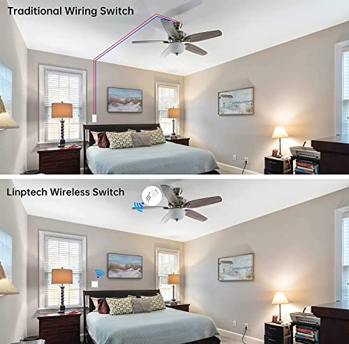 Self-Powered Wireless Light Switch and Receiver Kit, Linptech Remote Control ON/Off for Home LED Plug in Ceiling Lights, Closet Lamp, Pull Chain Light, Pool Lights, Fan - No Battery No Wiring, White