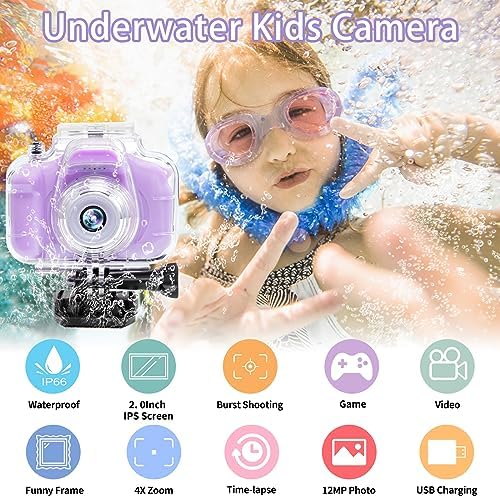 Cámara submarina impermeable para niños de 3 a 12 años, pantalla IPS de 2 pulgadas, 1080P HD, cámara de vídeo digital para niños, cámaras de acción para interiores y exteriores, los mejores regalos de Navidad y cumpleaños