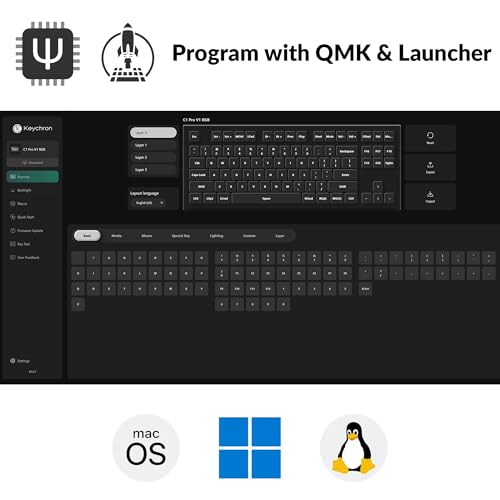 - Full QMK and VIA support: You can easily program and remap each key on the keyboard. The open-source firmware means endless possibilities for keyboard layouts, shortcuts, backlight effects, and more. The C1 Pro has a system toggle and additional customized keycaps for Windows and macOS systems. And you can even configure different keymaps for Mac and Windows devices, while VIA software is compatible with macOS, Windows, and Linux.