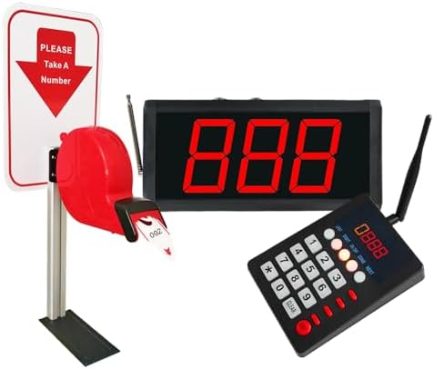 Take a Number System Queue Wireless Calling System Restaurant Calling System with Ticket Dispenser Loud Speaker Voice Broadcast 3 Digits Display for Hospital/Clinic/Food Truck/Bank/Kitchen