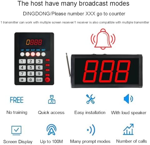 - 8 Broadcast types for number calling system meets your multiple needs; Larger number screen, easy to read even at a distance; Calling records cycle time is adjustable, no worry about customers miss the calling.