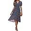 PRETTYGARDEN Women's Floral Wrap V-Neck Midi Dress Short Sleeve Boho Summer Beach Long Dress High Low Hem Smocked Dress Women