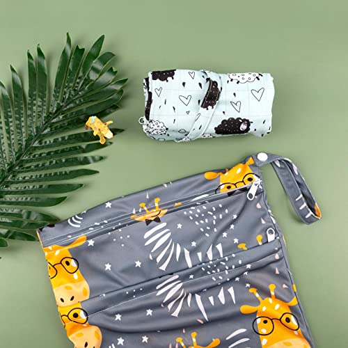 ALVABABY 2 piezas Bolsos para Pañales de Tela Wet Dry impermeables reutilizables con dos bolsillos con cremallera para viajes, playa, piscina, guardería, artículos sucios para bebé, bolsa para traje de baño o ropa mojada LZ1920