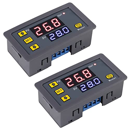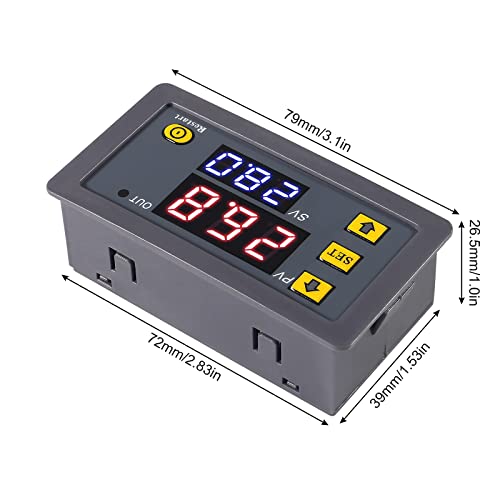 - 【Digital Cycle Timer Delay Module】Time ranging from 1 second to 999 hours. Double LED displays, so you can set two timing time T1 and T2. Six operating modes for your choice, available for various application