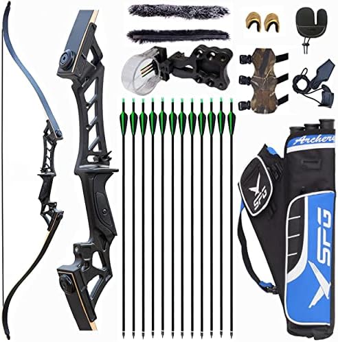 - PACKAGE: 1 x Recurve bow, 1 x Arrow rest, 1 x Bowstringer tool, 1 x Finger guard, 1 x Arm guard, 1 x 3 Tube arrows quiver, 15 x Mixed carbon arrows.