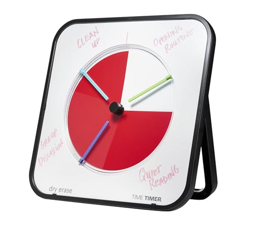 Proven for 25 years to be a globally recognized time management resource. Designed to show the passage of time using the signature colored disk. As time elapses, the colored disk disappears in a graphic, clear way - making common routines at work, school and home stress-free and enjoyable. The Time Timer MAX is the largest Time Timer to date! At 17 inches square, this timer allows everyone to see the original red disk counting down. But size isn't the only reason we call it the MAX. It's also eight timers in one - with customizable durations and interchangeable timer faces, the MAX can be set as low as 5 minutes, or as high as 24 hours. The flexibility in hanging options as well as the kickstand allows you to choose the best location for the timer. The included set markers or time dividers allow you to divide your schedule into manageable chunks to keep you moving through the day. The Time Timer MAX is the perfect solution for keeping any activity on time, even if it lasts all day. Easy to use: 1. ) Choose the timer face according to your timing need. 2. ) Next, on the back of the timer, select one of the 8 durations on the time duration dial to match the total length of time represented on your selected timer face or dry erase face. 3. ) Select your preferred sound-level for the alert located on the back of the MAX (silent, moderate or loud). 4. ) Last, set the red disk: Turn the center knob on the front of the timer counterclockwise. Automatically, the timer begins to countdown. The disk will disappear in a clockwise direction. When the red disk is gone, time is up.