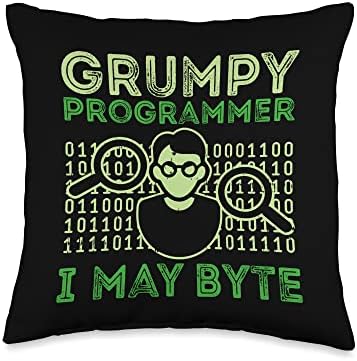 Grumpy Programmer I May Byte Computer Nerd Coder Coding Throw Pillow
