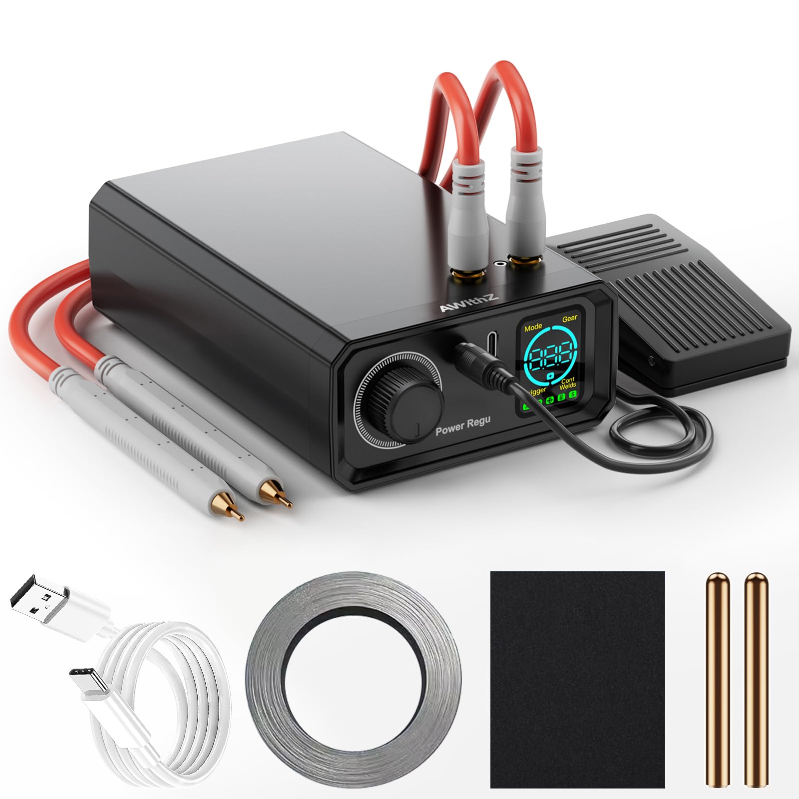 - 【Lo que obtendrás】Recibirás 1 controlador, 2 bolígrafos de soldadura, 2 líneas de entrada de alimentación (rojo y azul), 1 par de terminales prensados en frío en forma de U.