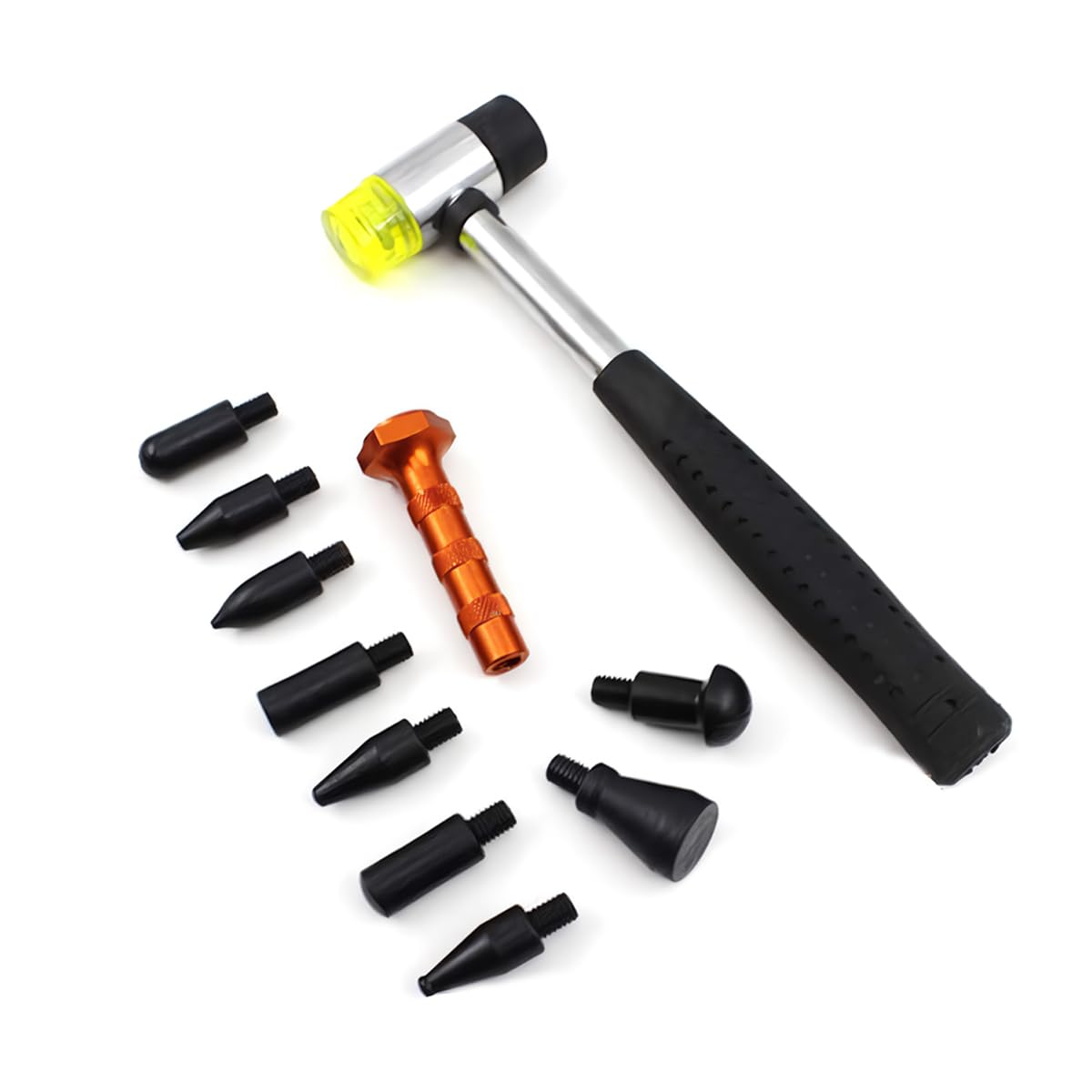- You will receive a 10-piece dent repair kit, including a rubber hammer and 9pcs different shapes head tips.
