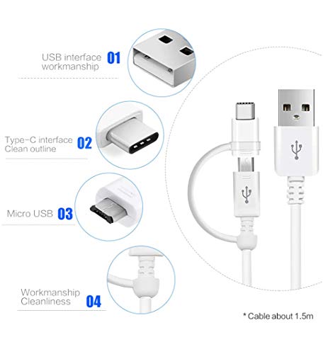Full 5A USB Data Cable Works for Honor X30i with MicroUSB and USB Type-C Adapter for True Dual Fast Quick Charge Speeds! (White)