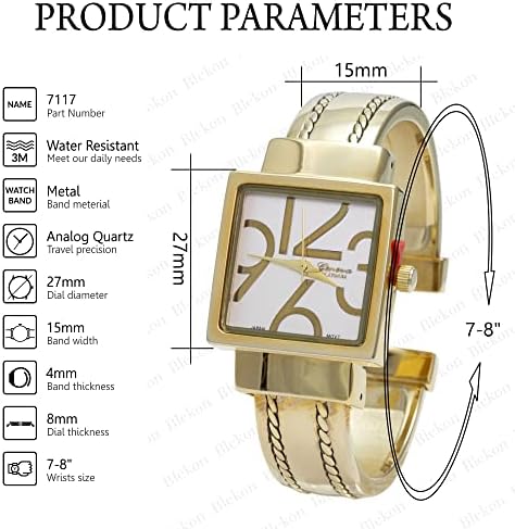 Blekon Collections Women's 27mm Square Case Modern Style Cuff Bangle Watch