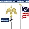 - The eagle topper ornament is the perfect finishing touch for the flag pole. Made of premium aluminum alloy, this majestic eagle perches atop your flag pole, proudly gazing out over your property. Complete your patriotic display with the eagle soaring above your flag.(Fits for installing solar flagpole lights)