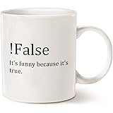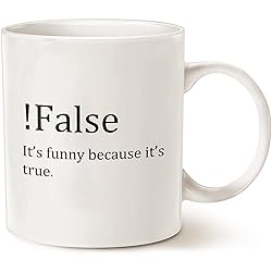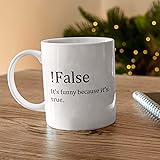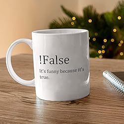 - False Funny Because It's True Mug, Funny Computer Programmer Coffee Mugs, Computer Coder Gift, Web Developer Gifts For Coders White 11oz Ceramic Tea Cup MUG DETAILS ------------------------- *Graphics are printed on both sides of mug * 11oz or 15oz White Ceramic Mug * Dishwasher & Microwave Safe ❤️ ♥️ ABOUT OUR MUGS ♥️ ~ Sublimation printing helps to ensure our design will not fade, peel, or crack ~ Our Designs are printed using environmentally friendly ink ~ Automatically printed on both sides for lefties & righties when customization is not selected ~ Made with durable, thick walls for safe handling------------------------- PLEASE NOTE------------------------- Our products are made with lots of love 💕 and in a smoke-free 💨🚫 environment. Colors may vary slightly in person than what's on screen since monitors 🖥 display colors differently .------------------------- HAVE QUESTIONS? ------------------------- Please feel free to send us a quick message and we'll be glad to help.