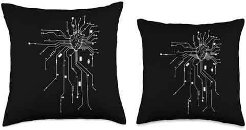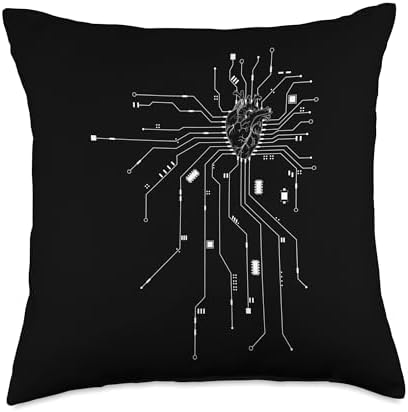Anatomical Heart CPU Processor PCB Board Computer Programmer Throw Pillow
