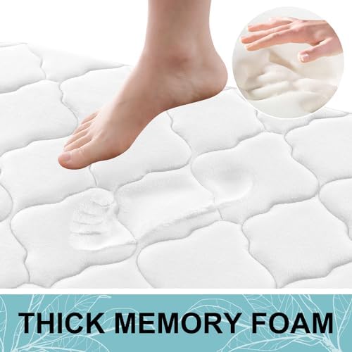 OLANLY Memory Foam Bath Mat Rug 24x16, Ultra Soft and Absorbent Bathroom Rugs, Non-Slip, Comfortable, Machine Washable Bath Carpet for Bathroom Floor, Tub, Shower and Home Decor Accessories, White