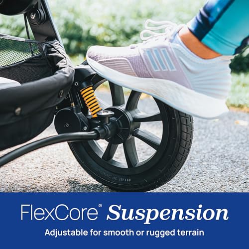 - CARRO DE PASEO LIGERO PARA CORRER – Un diseño de carro de tres ruedas con estructura de aluminio y suspensión trasera FlexCore ajustable que navega por terrenos suaves o variados, y neumáticos de espuma duraderos que nunca se quedan sin aire ofrecen comodidad para padres e hijos.