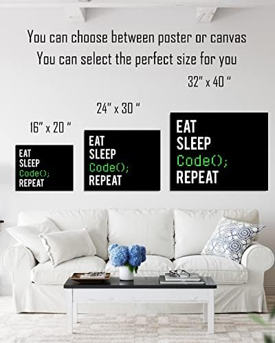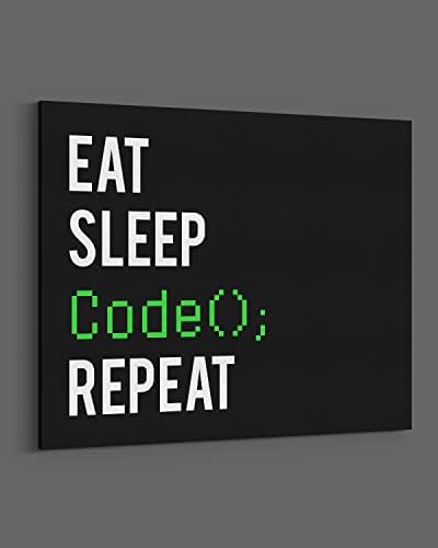Eat Sleep Code Repeat - Computer Technology Wall Art - Geek Wall Decor - Coding Wall Art - Gifts for Computer Geeks, Nerds, Coders and Programmers - 20x16 ready to hang canvas