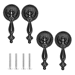 Biaungdo 4 Pack Antique Cabinet Pulls, Cabinet Pull Handle Knobs, Zinc Alloy Antique Decorative Handle Drawer Cabinet Teardrop Pull Knobs with Mounting Screws - Black