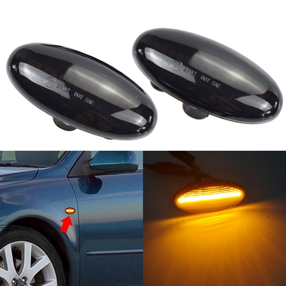 Hacreyatu Sequential LED Side Marker Turn Signal Light Lamp Assembly for MINI Cooper R50 R52 R53 (Black)
