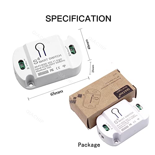 QIACHIP 2.4GHz Wi-Fi Wireless Smart Switch Module - No Hub Required, Compatible with Alexa & Google Home Assistant, Supports DIY 10A Relay