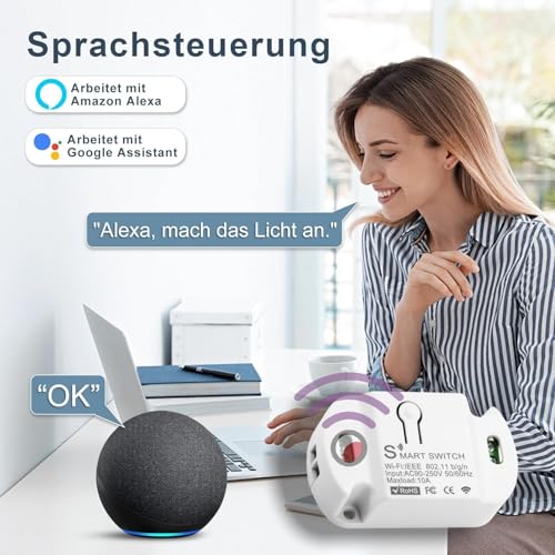 - 【Hands-free Voice Control 】Free hands via easy voice control with Alexa and Googel Home.Compatible with Alexa & Google Home, the smart switch allows you to control lights on/off with your voice.