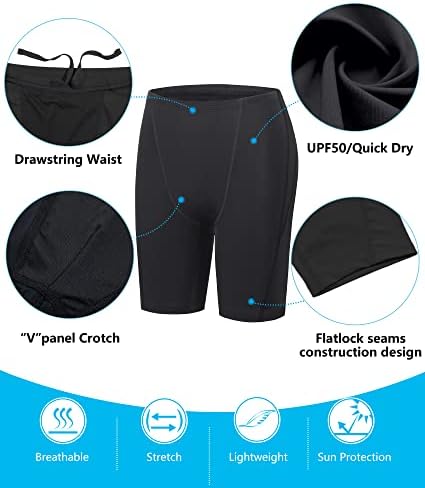 Enjoy long-lasting use with our high elastic and chlorine-resistant men's swimsuit jammers that maintain their stretch and shape over time. Experience ultimate comfort with our ergonomic design that includes a 3D design and liner in the crotch area for added support and security. Achieve the perfect fit with our adjustable drawstring that allows for a snug and customizable fit. Stay cool and comfortable during your swim with our breathable and lightweight material that offers 4-way stretch for freedom of movement. Stay protected from harmful UV rays with our UPF 50+ sun protection, making our swimsuits suitable for daily workouts, water activities, triathlons, and beach outings.