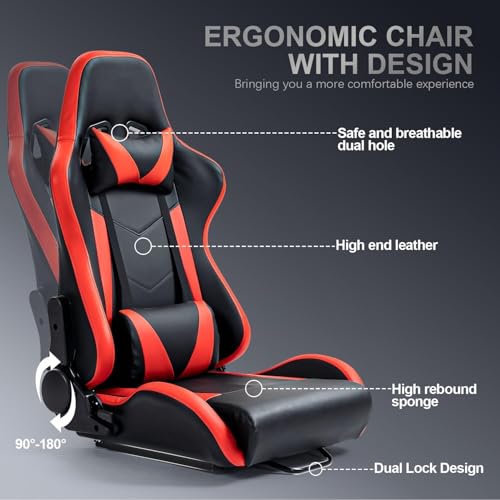 - 【Racing Seat 】The ergonomic seat is made of simulated PU leather material with high-density foam padding, equipped with lumbar and neck pillows for good body support and adjustable backrest angle