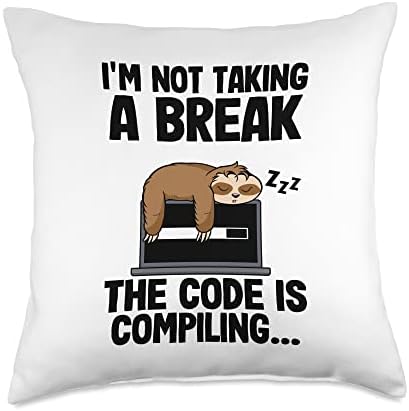Programming & Software Developer Gifts Men Women Compiling Coder Sloth Coding Funny Programmer Throw Pillow, 18x18, Multicolor