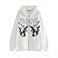 Gothic Hooded Sweater Ladies Dark Print Jacket Jacket Spring and Autumn Ladies Coat raw Hoodie(M,Grey)