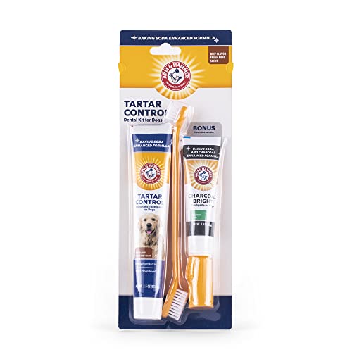 • 4 PIECE DENTAL KIT FOR PETS - The Arm & Hammer Tartar Control Dental Kit for Dogs provides you with everything you need to make brushing your dog's teeth quick, easy, and effective