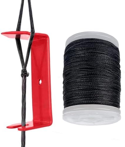 - High Quality bowstring separator is made of aluminum alloy material, durable and lightweight. The surface layer is electroplated, not fade easily. Polyethylene’s serving thread 120 yard/110m, 3 strands 0.015-inch durable and more wear-resistant.