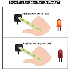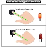 [Latching Switch]: Push button once, it’s on, push button again, it’s off. [What's Included]: 1*Latching Switch / 2*Quick Connectors. [Pre-wired Cable]: 11.5 inch pre-wired ON OFF button switch. [Easy Installation]: Strong Double-Sided Tape for Surface Mount installation. [What You Get]: Small Latching push button switch comes with 11.5 Inch pre-wired cable and double-sided tape for trouble free installation.