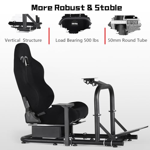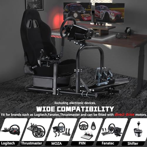 Dardoo Racing Simulator Cockpit con asiento negro Soporte para volante de carreras compatible con Logitech G29 G920 G923 Thrustmaster T500R G920 Stand Soporte de volante de carreras de siguiente nivel para PS4 Xbox PC, sin rueda, palanca de cambios ni pedales
