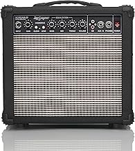 The Frontman 20G brings together familiar Fender cosmetics and "best-in-class" sound quality at a great price point that fits every player's budget. The 20G features a simple intuitive design that anyone, from beginners to pros, will immediately understand. It includes a clean channel with a volume and three EQ knobs for sonic flexibility, plus a separate switchable Drive channel with its own volume. It also comes with 1/8 inch auxiliary in to play along with your favorite tunes and a headphone jack for silent practice. The Frontman also puts out 20 watts into an 8 inch Special Design Speaker that delivers great tones when practicing or playing with friends. Its dimensions are 10x16x16 inches and it weighs 15.8lbs
