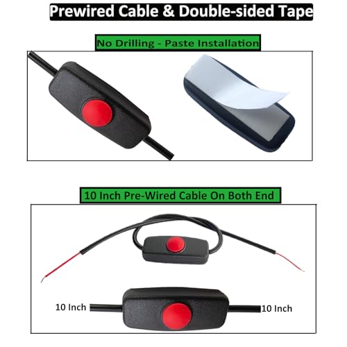 - [In-line Switch]: 10 Inch prewired come out on both end for easy wire connection.