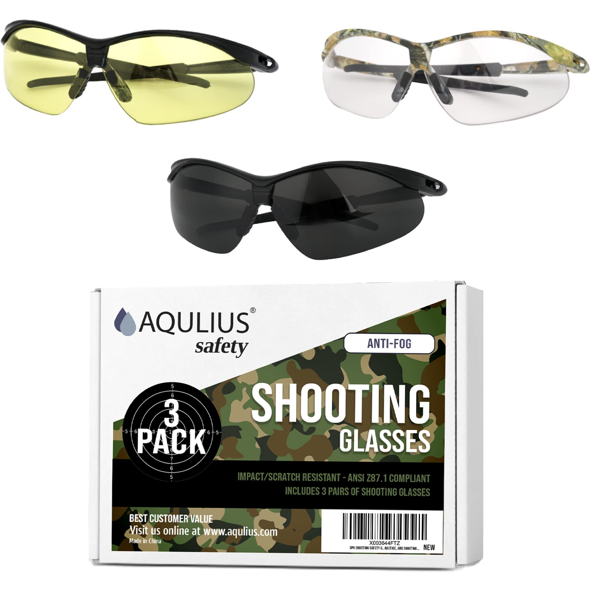 Aqulius 3pk Shooting Glasses - Safety Glasses - Eye Protection for Shooting Range, Tactical Shooting Goggles