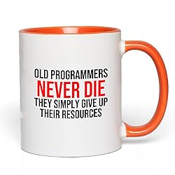 Bubble Hugs Programmer 2Tone Orange Mug 11oz - Old programmers - Program Coding Software Developer Computer Engineer Coder Geek Nerd Debugging Binary Code